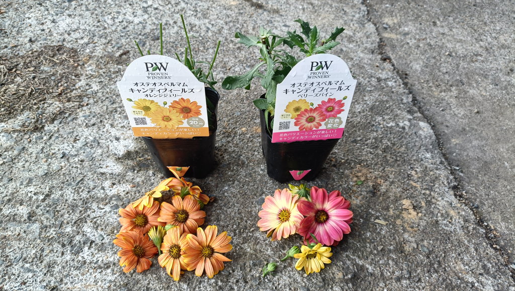 買ってきたのはオステオスペルマムキャンディフィールズのオレンジジェリーとベリーズパイン