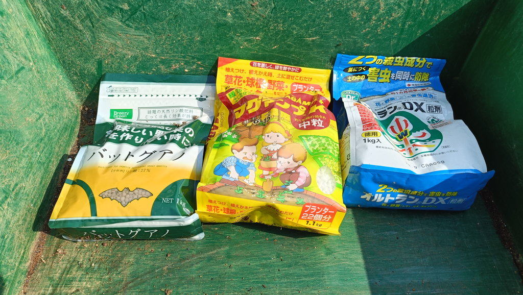 わきのスキマを用土でうめてバットグアノを1つまみまいて完成です