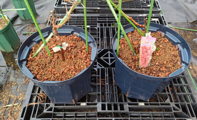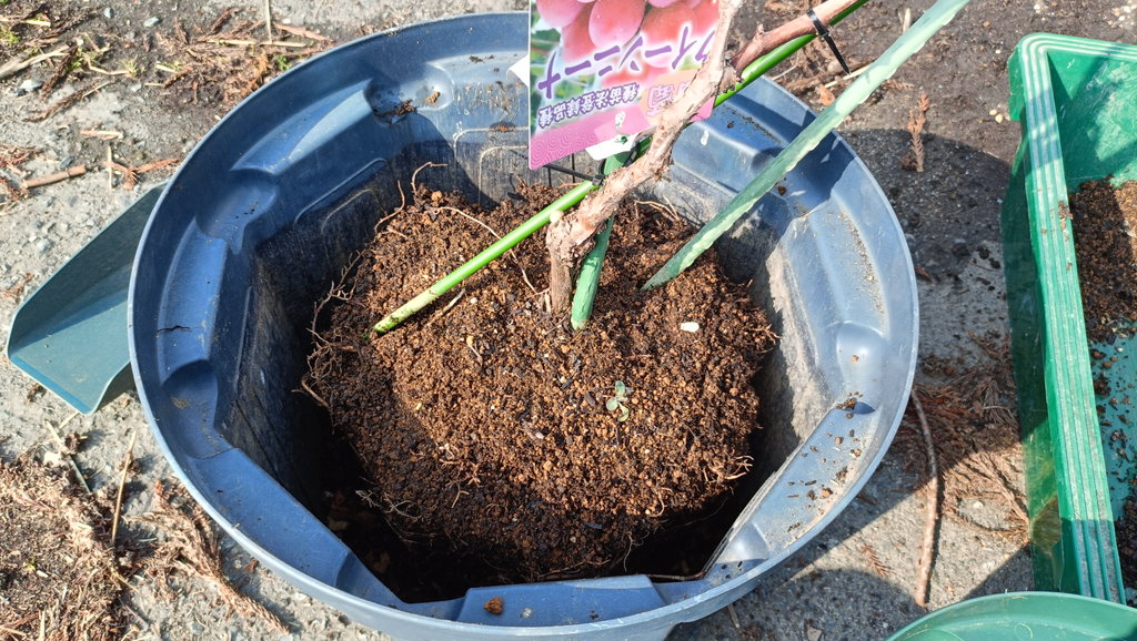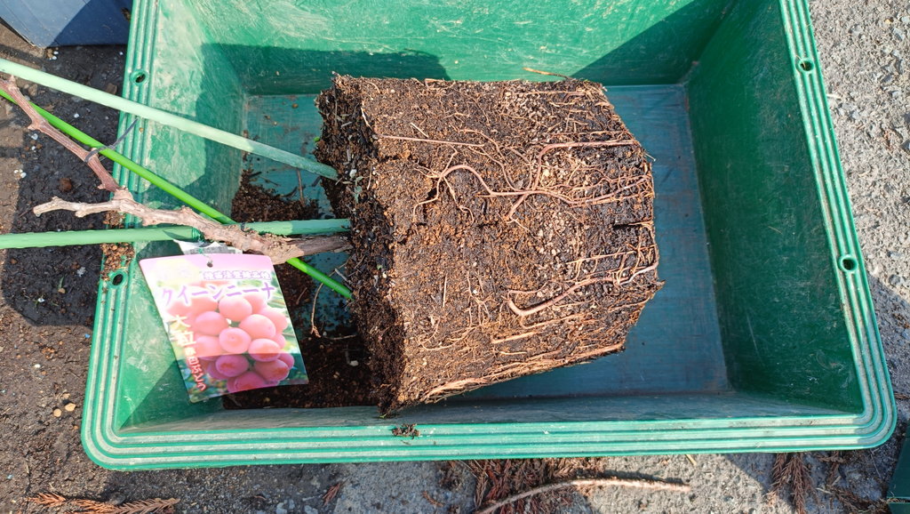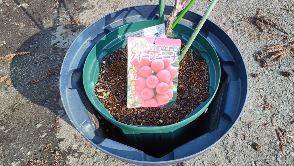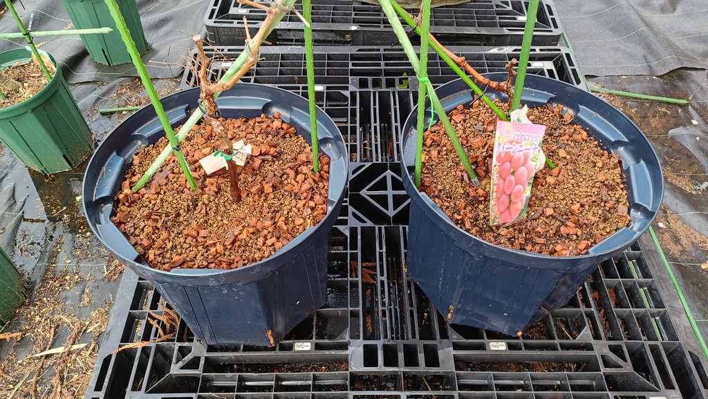ブドウ(シャインマスカットとクイーンニーナ)を10号スリット(CSM-300)から40cmスリット(CSM-400)に鉢増ししました。ポットとしてはこのサイズで完了です。