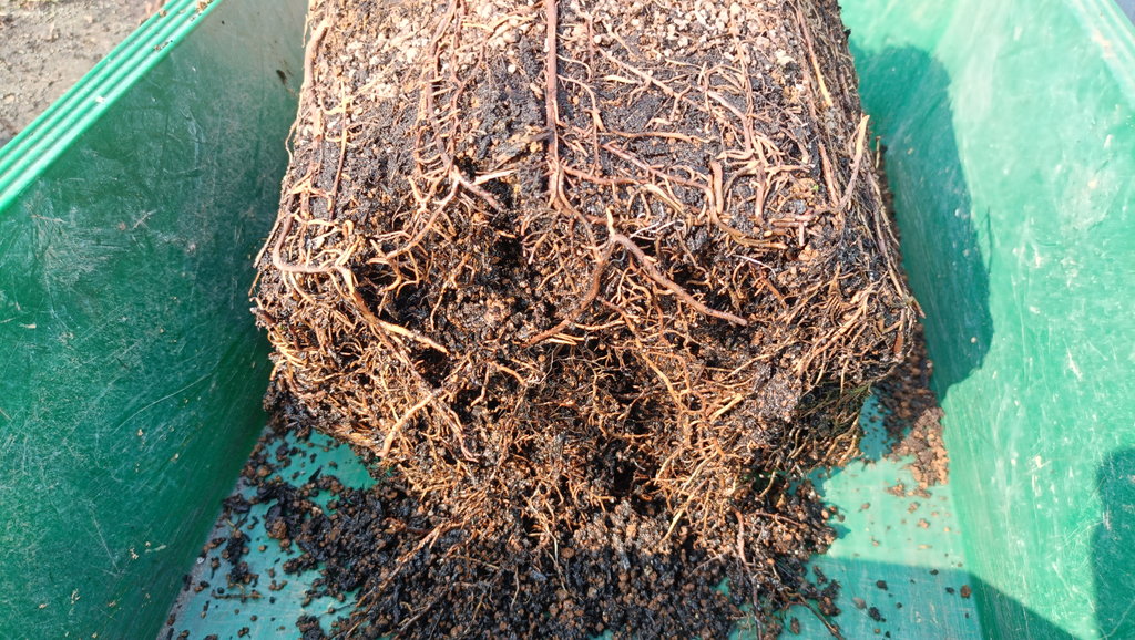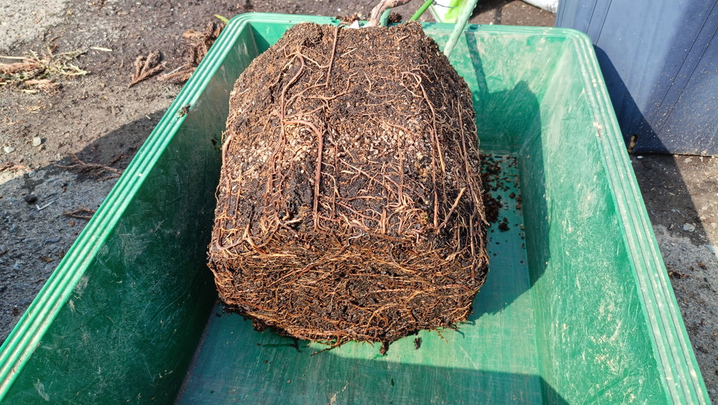 スリットいっぱいに根が張っていました。根詰まり一歩手前だったかな。