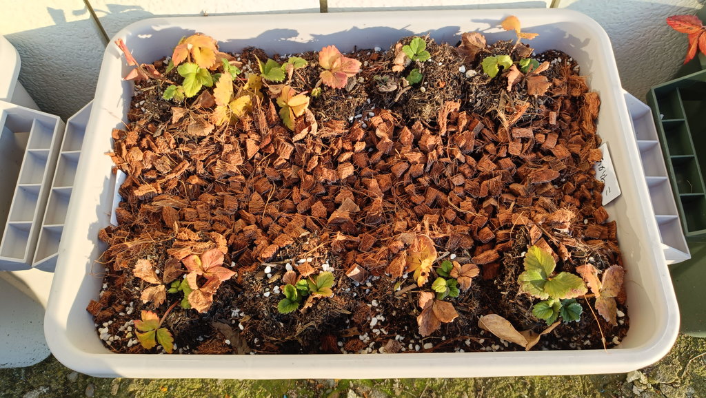 去年の10月~11月?の話ですがイチゴの定植を行いました。35Lの大型プランターに8株×3品種で作成しています。
