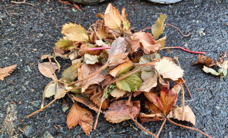 イチゴの枯葉取り